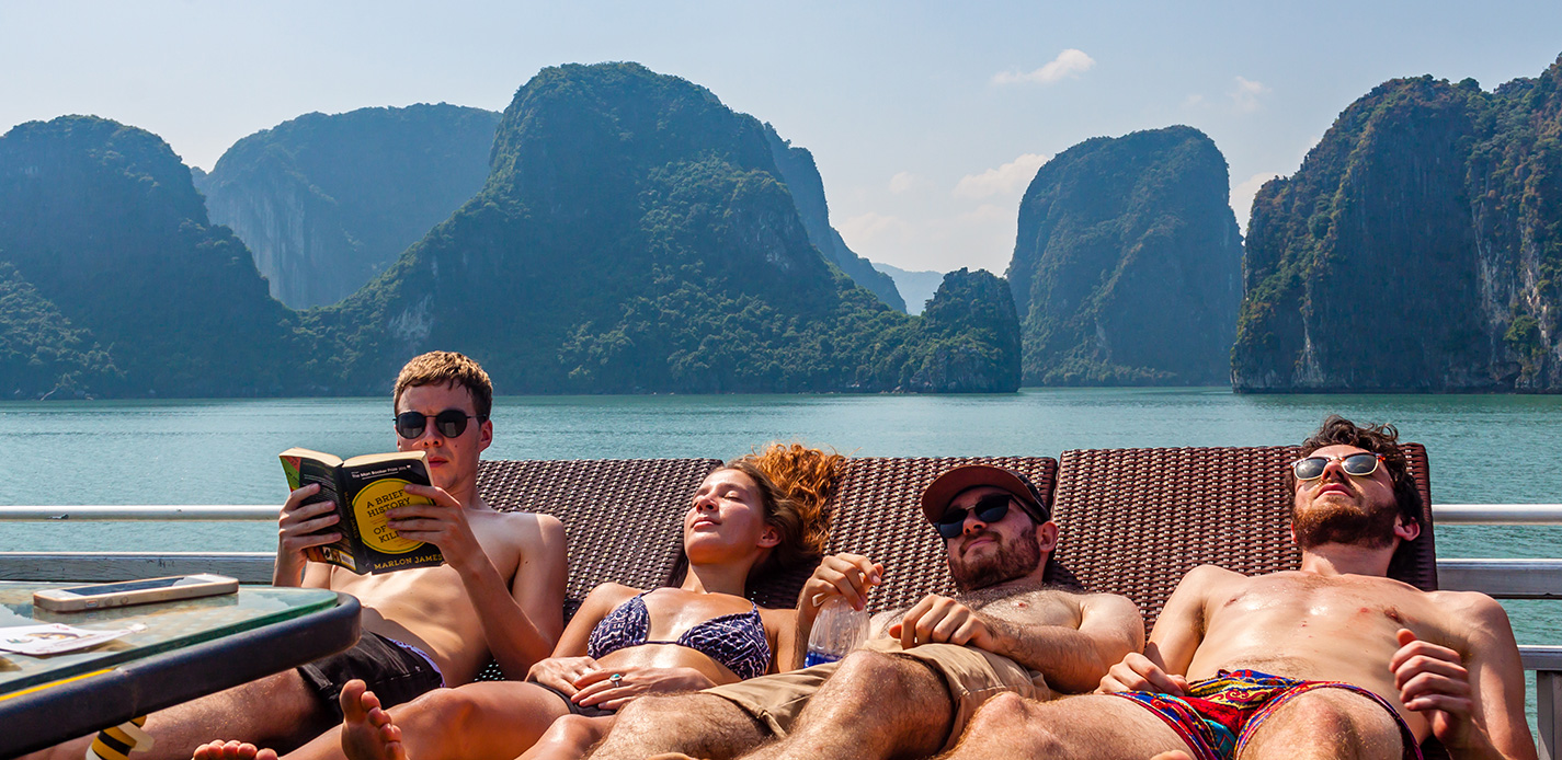 I spent a weekend touring Halong Bay on an overnight boat. We kayaked in the early morning, explored caves, and enjoyed the weather surrounded by towering rock beauties.